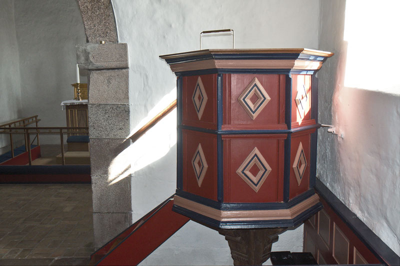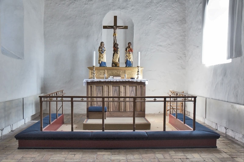 Kirkens alter er opført i granitkvadre og beklædt med træpaneler på forsiden. På alterbordet står der tre figurer, der forestiller Maria Magdalene, Maria og Johannes. De var oprindeligt en del af den sengotiske altertavle fra omkring 1450.