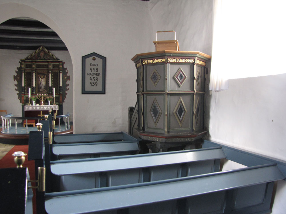 Kirken er, efter dens opførelse, blevet ombygget og tilbygget. Blandt andet er den blevet forlænget mod vest, på et tidspunkt i senmiddelalderen. De tykke mure indikerer, at det formentlig har været tanken at de skulle bære et tårn. I stedet for et tårn blev der opført en klokkestabel på kirkens vestvendte gavl, med en klokke fra 1684. Døbefonten er romansk stil og udført i granit. Dåbsfadet er fra Nürnberg, og fremstillet i perioden omkring 1550. Prædikestolen er fra 1576, og den lidt nyere altertavle er fra starten af 1600 tallet.