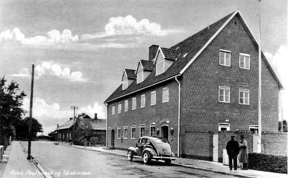 Aars Posthus på Banegårdsvej fotograferet i starten af 1950'erne. Posthuset stod færdigt i 1945. Klik her for helt foto!