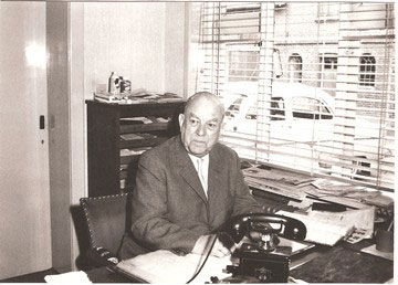 Lauritz Heidemann fotograferet på kontoret i 1950'erne. Klik her for helt foto!
