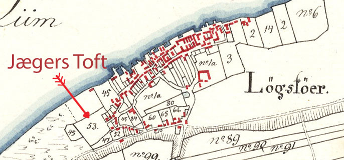 Jeger havde en mark/toft lige uden for byens vest grænse, og man kom derud gennem en åbning i diget, som blev kaldt Trangeled. Det var den vestre bom i det gamle by dige, der gik fra skrænten og ud mod vandet, der hvor sygehuset oprindeligt lå - nu Fischershave.