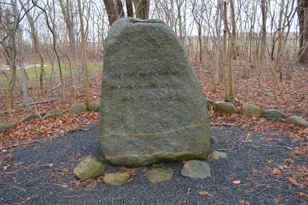 Grundlovssten i Gedsted Lystanlæg sat i forbindelse med 100 året for Danmarks Grundlov i 1949. Klik her for helt foto!