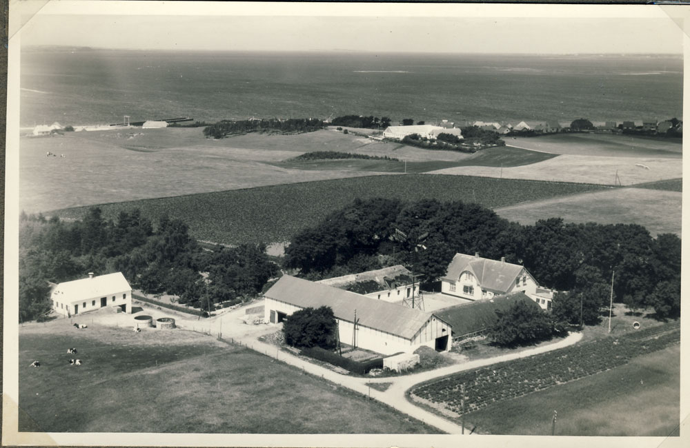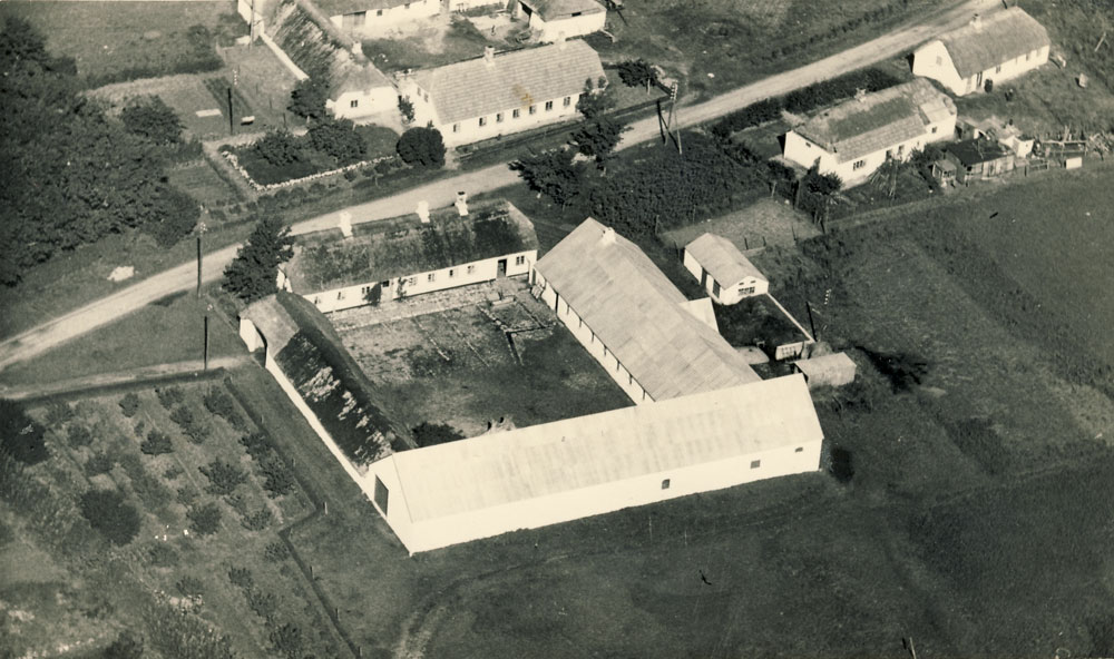 Luftfoto fra Louns. Gården i midten af billedet var tidligere kendt som Poulsgaard. Billedet er fra omkring 1940. Klik her for helt foto!