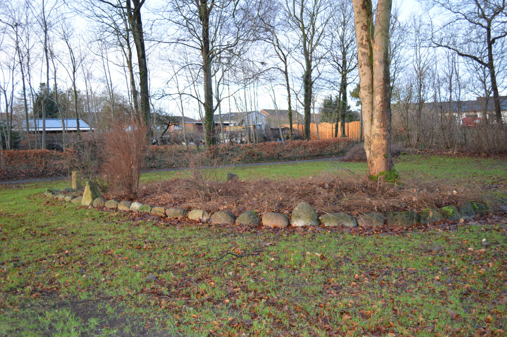 I Egelund findes en mindesten, der fortæller at anlægget blev beplantet i 1921, men de første år var sandflugten ofte hård ved de unge træer. Nogle år senere blev der rejst en mindesten, som markerer genforeningen i 1920, hvor Sønderjylland atter blev en del af Danmark. Inskriptionen på stenen er "MDCCCLXIV" (1864) og "MCMXX" (1920), mens det sønderjyske våben med de to slesvigske løver, ses mellem årstallene. Stenen kommer fra Dollerup, hvor den i første omgang var blevet forsøgt sprængt bort. Da sprængningen mislykkedes blev stenen i stedet for anbragt i anlægget, hvor den nu har stået i over 80 år. Bag på stenen findes krudthullet stadigvæk.