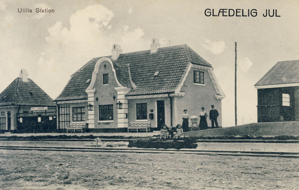Ullits Station, som det så ud fra skinnesiden. Billedet er fra 1910'erne. Klik her for helt foto!